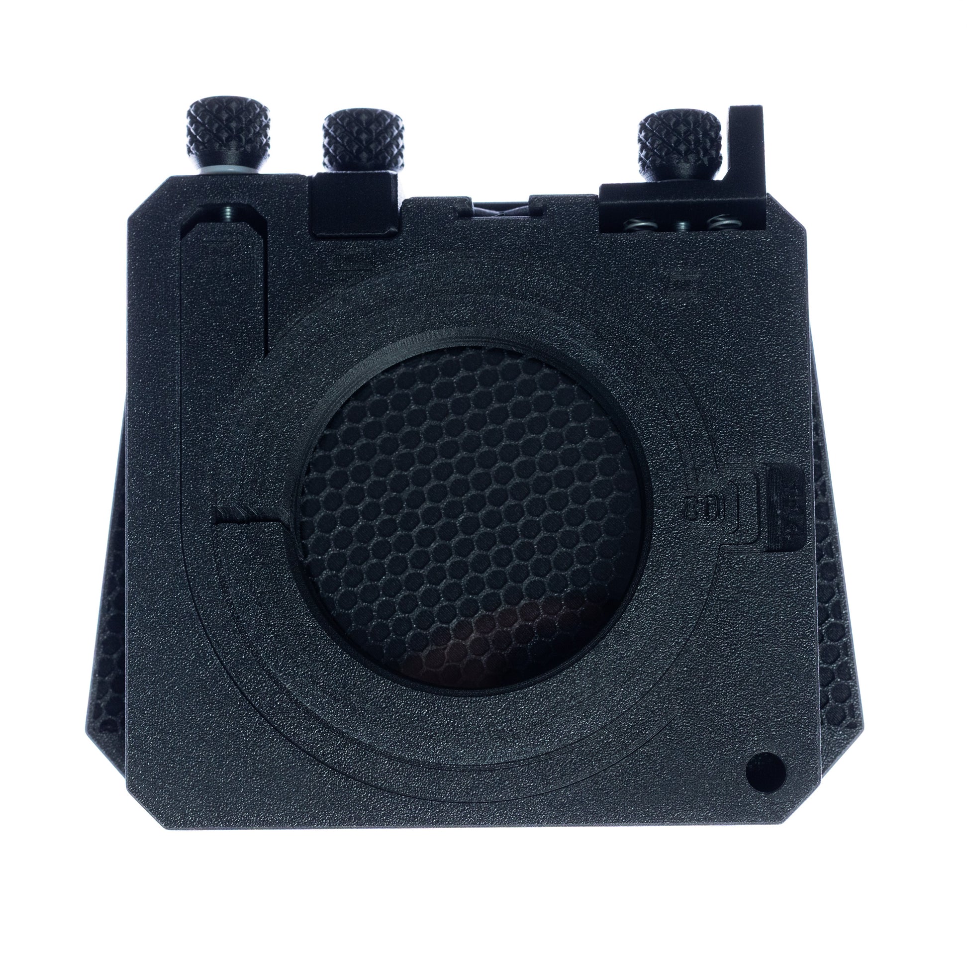Compatible with 4” x 5.65” filter sizes, fits 2 filters. The Lightweight Compact Matte Box design to be used on cine clamp on lenses with 114/110/100/95/80 and additional lens barrel sizes with appropriate adopter ring.