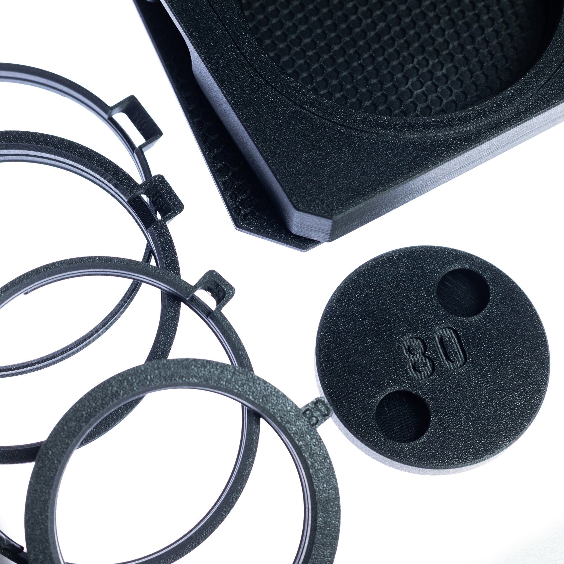 Stackable adapter rings include 4 step down rings 110/100/95/80