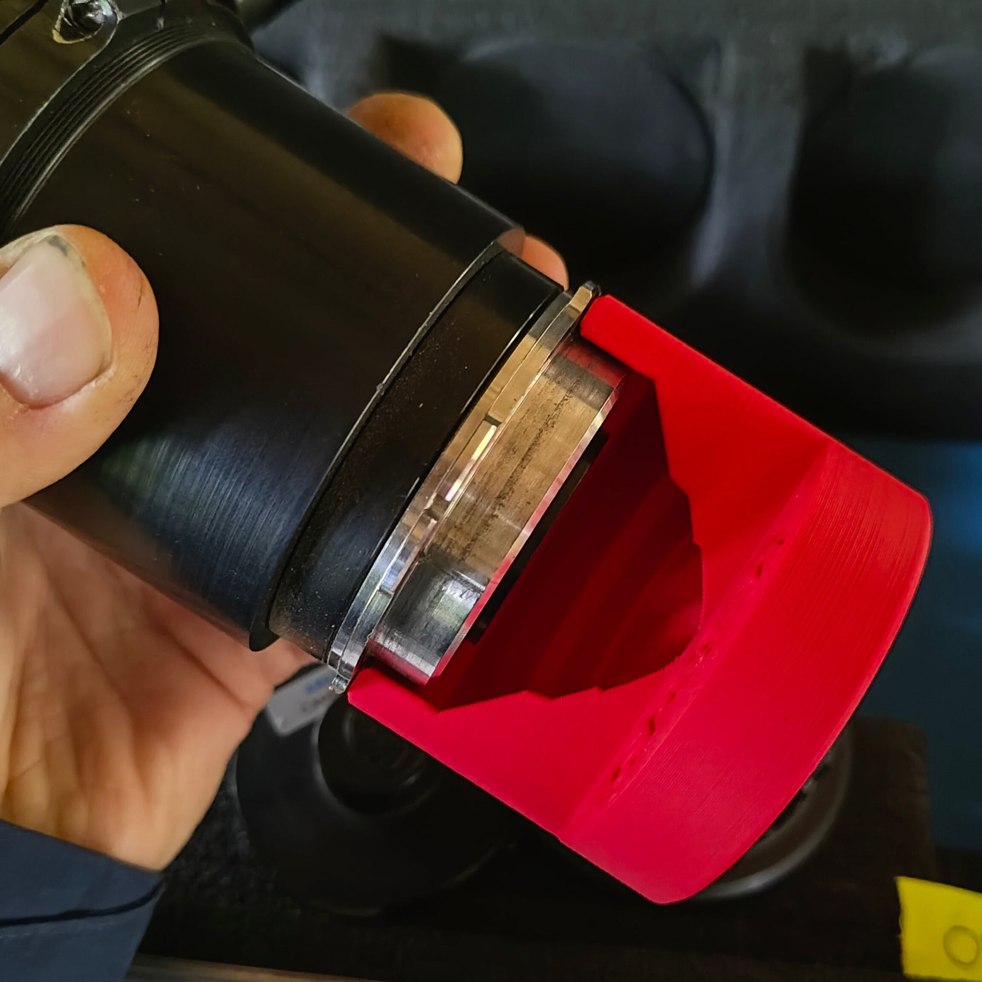 Lens gauge, is a specialised tool used to measure the rear protrusion of cine lenses to ensure compatibility with the film cameras. It verifies that the lens does not protrude too far, which could cause it to collide with the mirror inside the camera body. This gauge is particularly useful for checking any lens to ensure it clears the mirror on all 16mm and 35mm Arriflex cameras. Lens must be set to infinity focus!